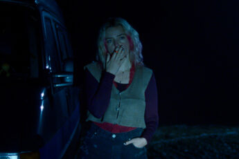 There is no doubt that Roubini’s portray of Jamna is aligned with this slightly exoticizing form of anti-documentary. In a scene exemplifying the film’s cultural voyeurism, the obligatory Slavic booze-drinking is celebrated: Jamna’s few inhabitants are drinking vodka and our protagonists are dancing in white-blue-red tracksuits to trashy music, the whole scenery lit by blue spotlights projecting circular patterns onto the yellowed walls. This is reality, but it does not seem real.