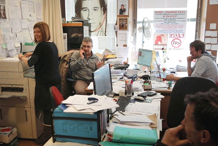 The advocates help the employees to untangle the complex bureaucratic webs and encourage them to stand up for themselves. Goran Zrnić in particular, the oldest of the three and Bosnian himself, is a master of the art of tough love. Anyone who seems to be wavering in their resolve is sent to him to be firmly but good-heartedly bullied into taking action. The employers, for their part, are simply bullied. He uses his charisma selectively and is definitely someone you want on your side. In a particularly satisfying scene, he holds up two phones at the same time, resoundingly berating an unscrupulous company representative on one while his client listens in on the other.