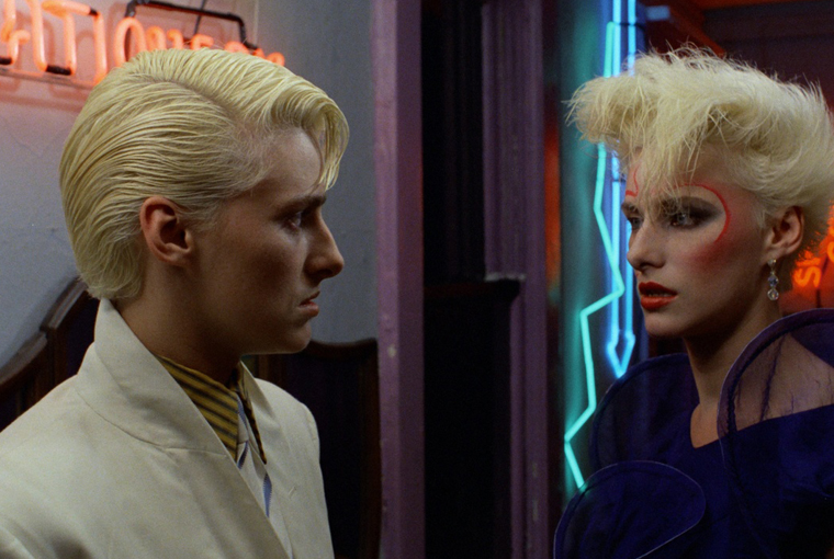 At a time when postmodernism was oftentimes accused of irony or even detachment, Liquid Sky burned with sincerity. Its Art Deco geometries, echoes of German Expressionism, punk overtones, and synthetic colors, to name but a few of its characteristics, were the film’s unique convictions. Director Slava Tsukerman, production designer Marina Levikova, producer Nina Kerova, and cinematographer Yuri Neyman arrived in New York as outsiders. From this standpont, they encountered the city’s punk and fashion scenes as “translators.”1 The visual idioms of high and outsider art, new wave modelling, contemporary photography, and underground theater became a language they reassembled from various fragments to synthesize an estranged yet simultaneously familiar vision of the West. This short essay situates Liquid Sky within a broader history of Eastern European émigré filmmaking, where aesthetic excess becomes a mode of negotiating cultural translation under late Cold War conditions. It focuses on how the film’s distinctive visual strategies configure identity under conditions of displacement.